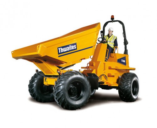 Este dúmper de obra, THWAITES Mach.2098, es articulado y con tracción 4x4. Tiene una gran envergadura y está provisto de una tolva giratoria para una carga máxima de 9 toneladas. Este dúmper está pensado para su uso en terrenos u obras grandes. Es manejable y útil gracias a su descarga giratoria y a su maniobrabilidad cómoda mediante dirección asistida y transmisión hidrostática. Está unidad está matriculada y puede circular por la vía pública.
