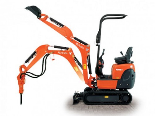 Esta miniexcavadora, KUBOTA K008-3, es la más compacta de la marca. El ancho del tren de rodaje se puede ajustar hidráulicamente de 700 a 860 milímetros en pocos segundos. Esto le permite entrar en espacios particularmente estrechos y pasar fácilmente por puertas de tamaño estándar. Está equipada con un juego de cazos (estrecho de 250, estándar de 400 y de limpieza de 800 milímetros) y un enganche rápido mecánico KLAC modelo C. Esta máquina tiene la opción de alquilarse con un martillo hidráulico KUBOTA KM55.