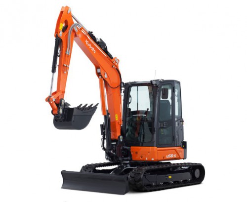 Esta miniexcavadora, KUBOTA KX056-5, combina una gran potencia con una excelente versatilidad, lo que permite realizar trabajos muy exigentes en condiciones extremas. En este modelo se ha priorizado la comodidad del operario, con el diseño de una espaciosa cabina que cuenta con una amplia entrada, para poder subir y bajar de ella con facilidad. Así mismo, la miniexcavadora permite utilizar fácilmente varios implementos hidráulicos y cuenta de serie con dos circuitos auxiliares que se controlan desde un único mando. Está equipada con un juego de cazos (estrecho de 350, estándar de 800 y de limpieza de 1.500 milímetros) y un enganche rápido mecánico KLAC modelo E. Esta máquina tiene la opción de alquilarse con un martillo hidráulico KUBOTA KM305. La cabina ha mejorado notablemente respecto al modelo anterior, es mayor y más amplia, con mayor visibilidad y comodidad.