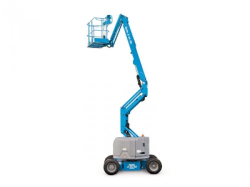 Esta plataforma articulada y telescópica, GENIE Z34/22N, ofrece un funcionamiento silencioso y libre de emisiones para poder utilizar en espacios cerrados. Su anchura mínima le permite pasar por puertas dobles de tamaño estándar, trabajar en zonas cercanas a fachadas de edificios o en lugares con obstáculos. Sus dimensiones reducidas permiten el acceso a lugares relativamente bajos en pasillos o áreas donde el espacio es limitado. Esta máquina incorpora neumáticos de goma que no dejan marcas en el suelo y su funcionamiento es mediante energía eléctrica limpia y eficiente.